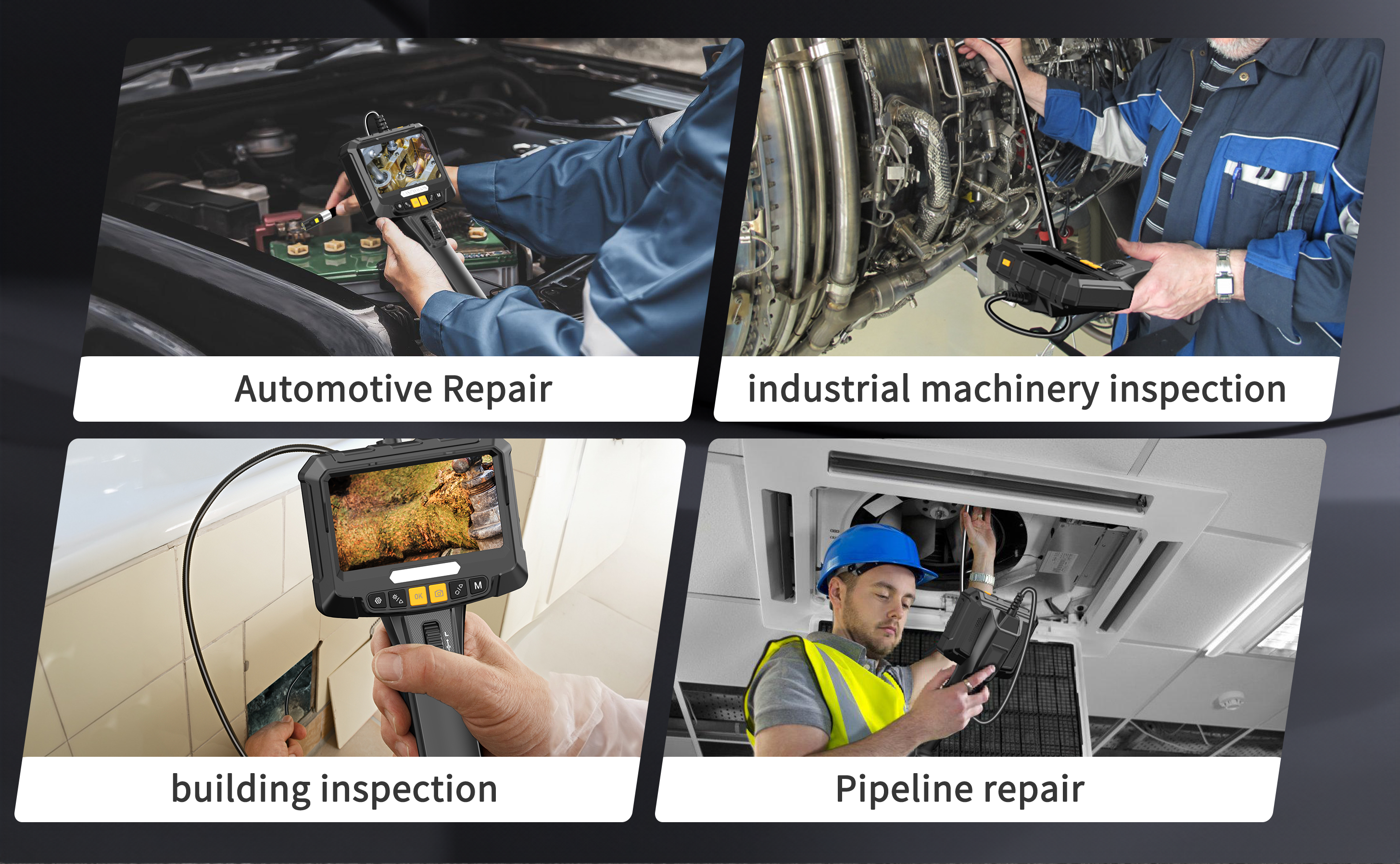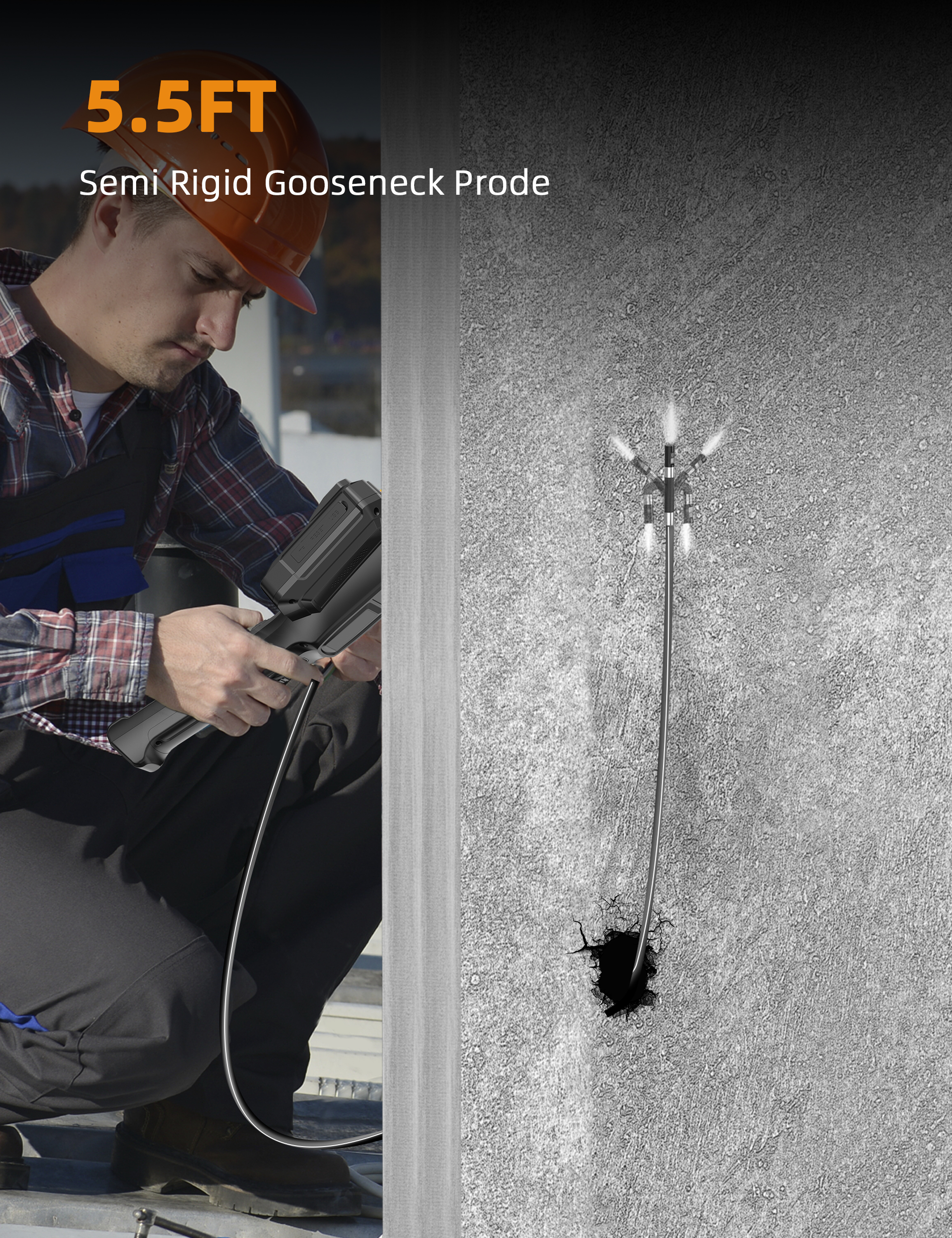 Lighting & Waterproof: The borescope cameras are equipped with 8+1 high-intensity LEDs with 4 levels of brightness adjustment and are IP67 water and oil resistant, suitable for use in wet or oily environments. Our borescopes are excellent tools for house and industrial inspections
