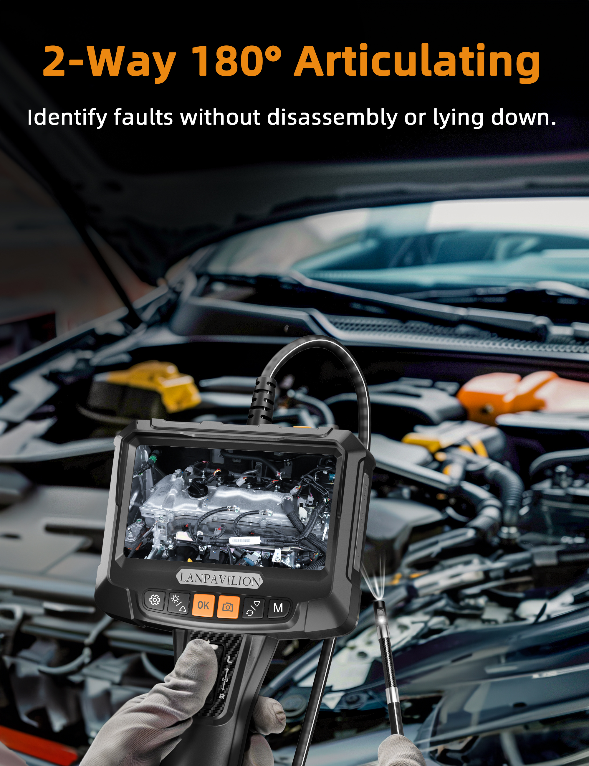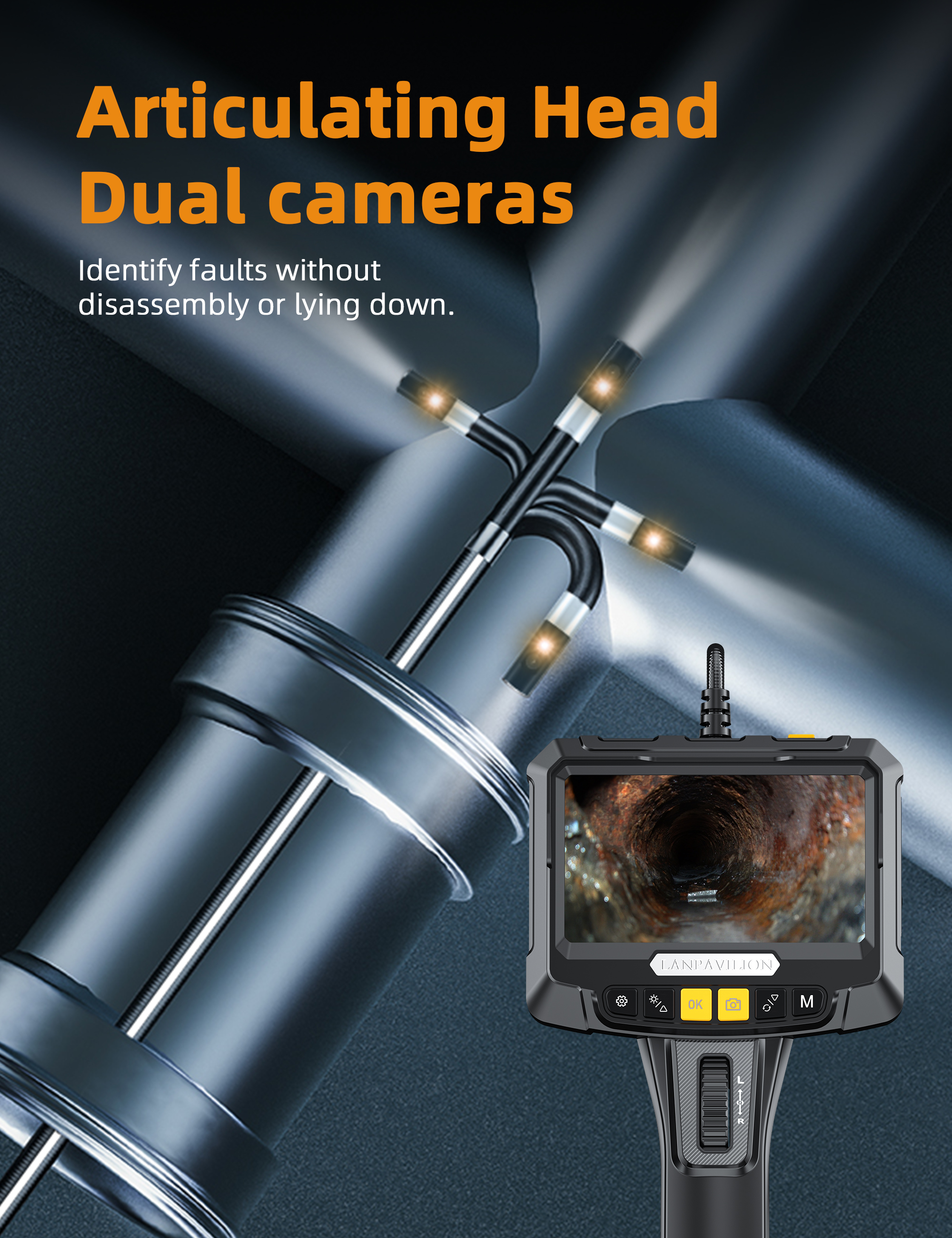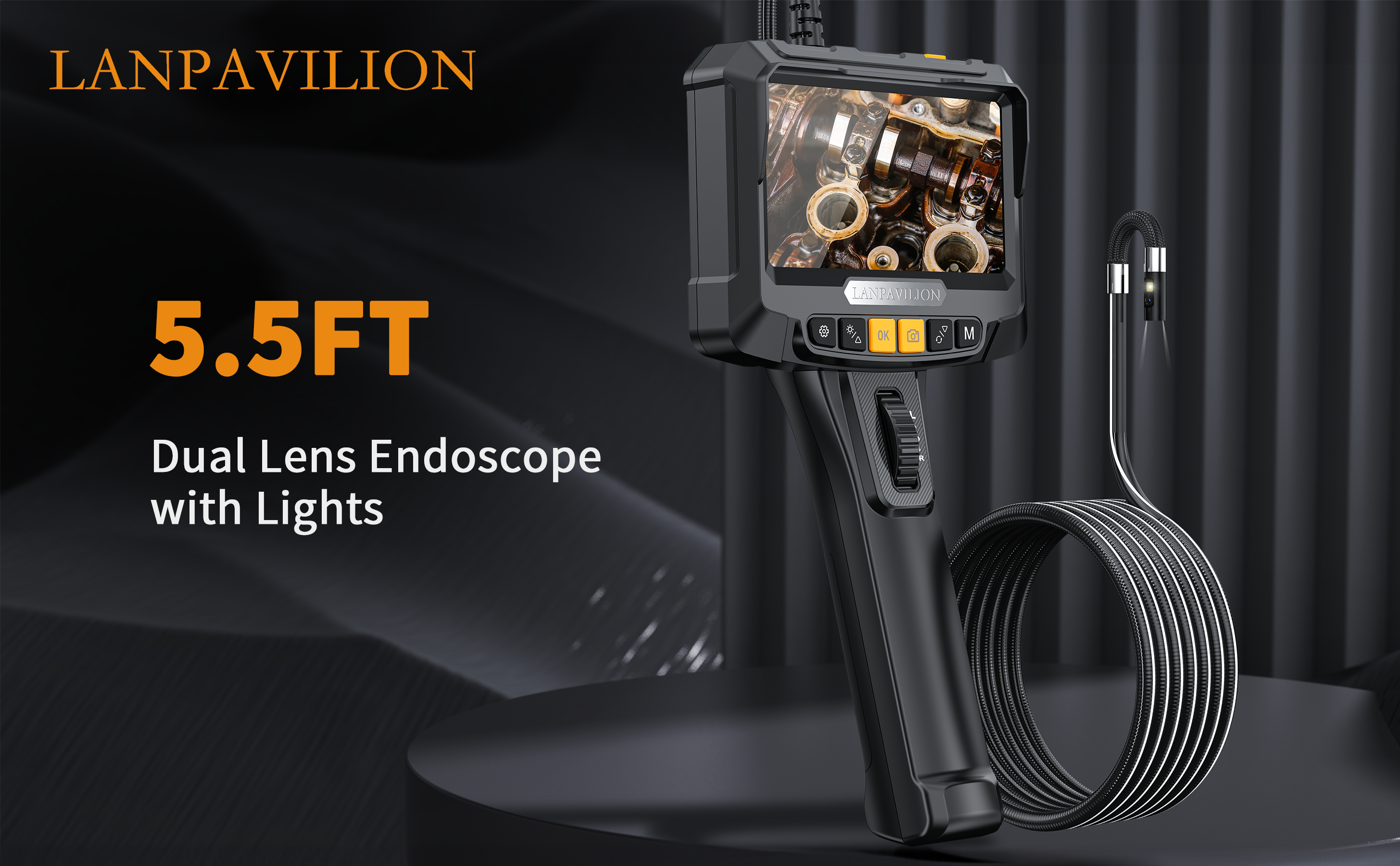 Dual Lens Borescope: This endoscope camera is designed with dual cameras and a 5-inch screen. Both the main camera, side camera, and screen feature 1920x1080 HD pixels, providing you with a comfortable viewing experience.Best focal distance: 2-10 cm
