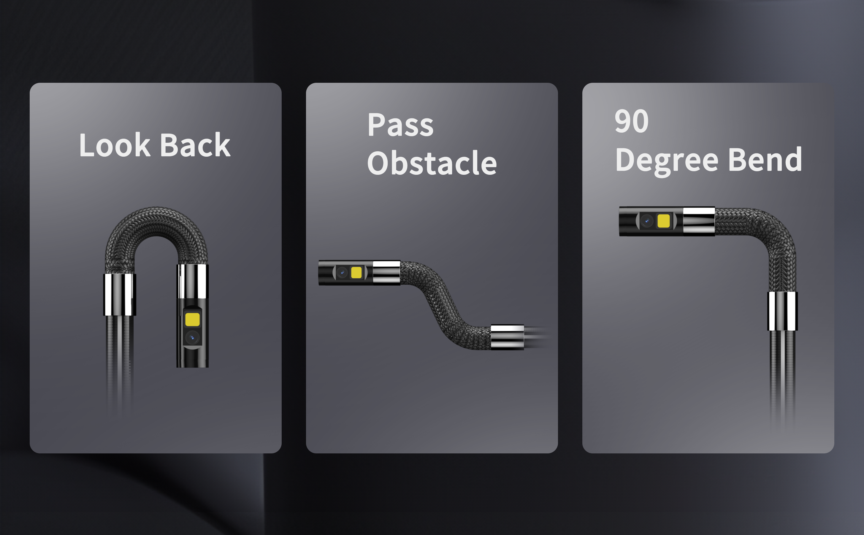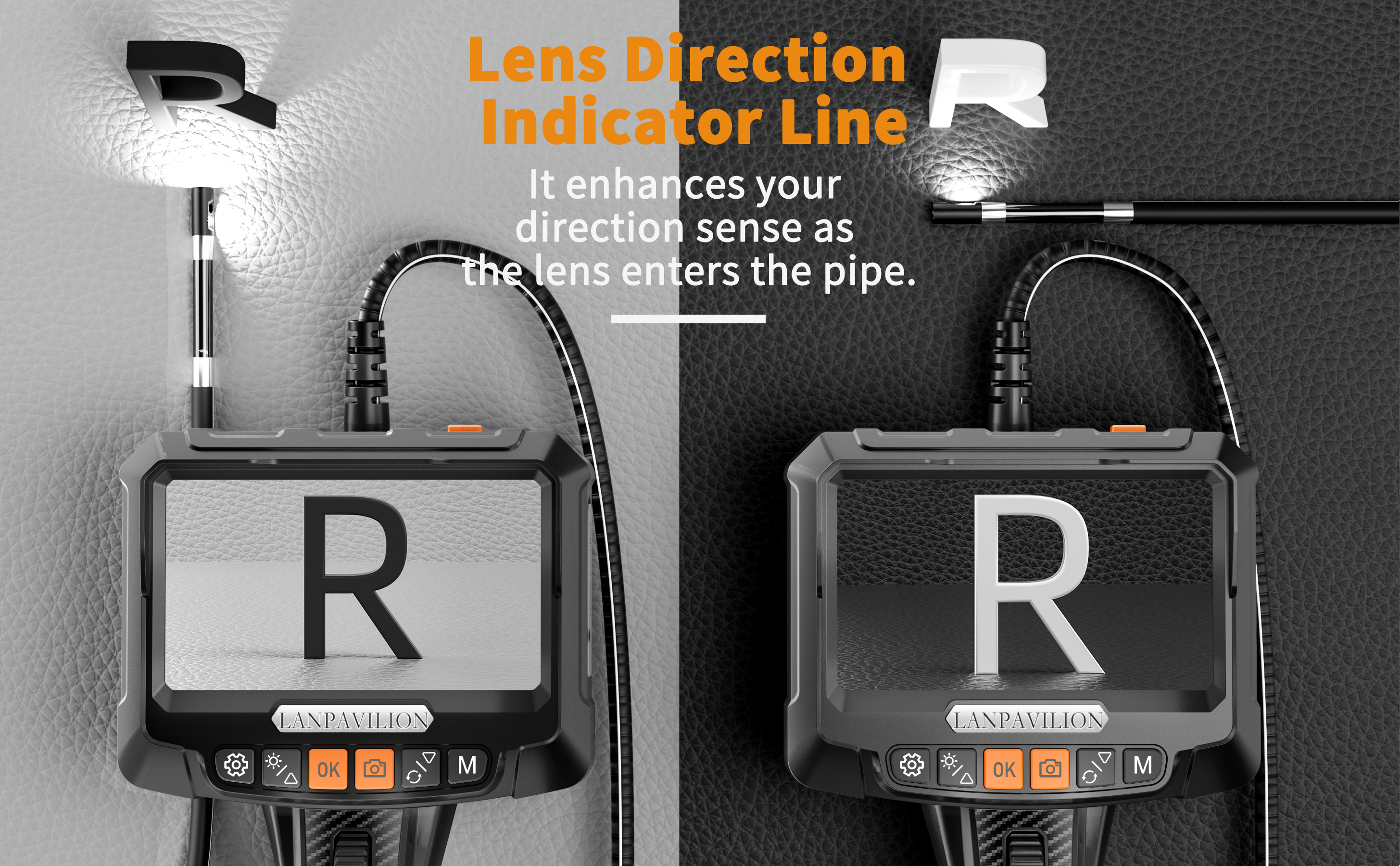 Increased Sense of Direction: The Snake Inspection Camera Catheter utilizes exclusively designed white directional lines for better directional identification in automotive, plumbing, and wall inspections