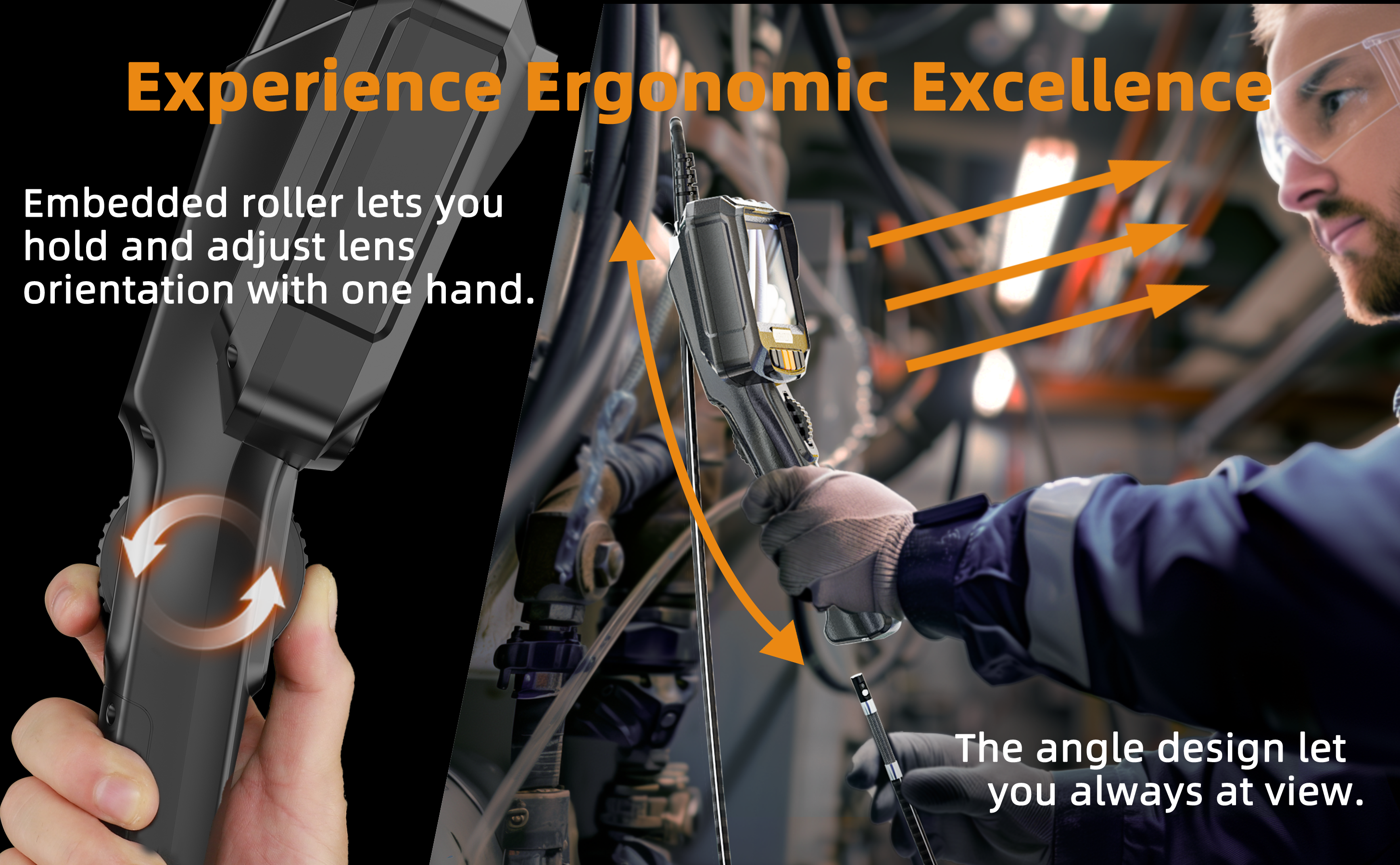 Excellent Industrial Design: An outstanding feature of this borescope is the strategically positioned scroll wheel between your thumb and index finger, allowing for effortless one-handed operation. It also includes a hook, magnet attachment, a 3000 mAh Li-Ion battery, a 32 GB memory card, and a USB to Type-C cable, all contributing to streamline and enhance your workflow